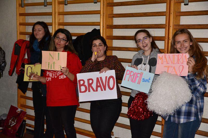 Echipa profesorilor a fost alcătuită din Pavel Daniela (profesor Limba Română), Jîșcanu Claudia (profesor Limba Franceză), Cucoreanu Gianina (profesor Limba Engleză), Ignat Luminița (profesor Socio-umane), Ifrim Monica (profesor Limba Engleză), Gherman Willy (profesor Chimie) și Hîrtopeanu Răzvan (profesor Educație fizică și sport), doamnele profesor Nicorici Sonia (profesor Chimie), Lipșa Crina (profesor Geografie) și Drăghici Cristina (profesor Informatică) aducând un plus de încredere și determinare ambelor echipe. Momentele antrenante, energice și vesele au fost surprinse de elevul Sebastian Mihai (clasa a XII-a F).