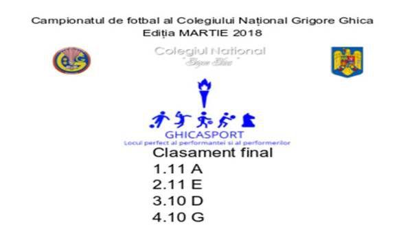 Acesta a fost al 5-lea campionat de fotbal organizat la Colegiul Național Grigore Ghica din 2016 până astăzi. Ghicasport a mai organizat 2 ediții ale campionatului de șah si una a campionatului de baschet. După vacanță vor mai fi organizate 2 competiții, dedicate voleiului și baschetului.