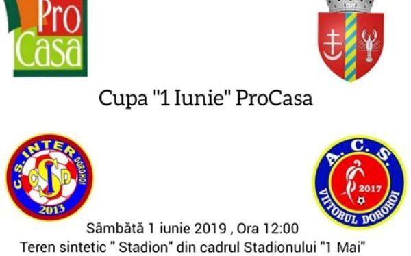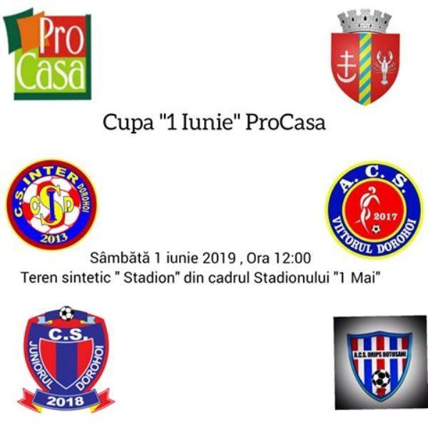 ProCasa Dorohoi organizează Cupa „1 Iunie” sâmbătă, 1 iunie 2019, începând cu ora 12:00, pe terenul sintetic din incinta Stadionului „1 Mai” din Dorohoi.