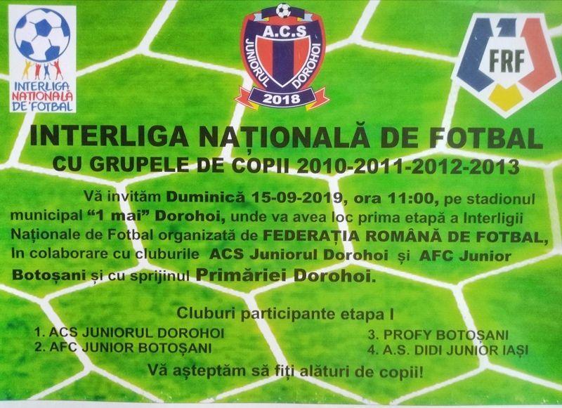 Clubul CS Juniorul Dorohoi în colaborare cu Clubul AFC Junior Botoșani va găzdui cele 10 etape ale Interligii Naționale de FOTBAL 2019-2020, organizată de FEDERAȚIA ROMÂNĂ DE FOTBAL cu sprijinul PRIMĂRIEI DOROHOI.