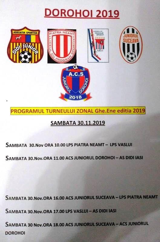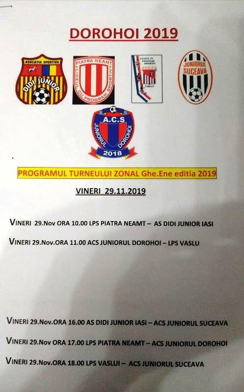 Turneul Zonal Ghe. ENE, ediția 2019, se va desfășura la Baza Sportivă „OBOR”, începând cu ora 09:30.