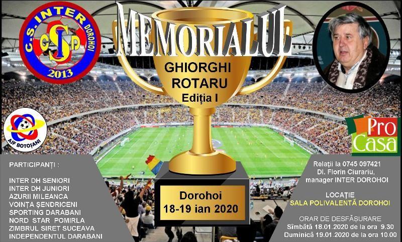 Pe 18-19 ianuarie, în SALA POLIVALENTA a orașului Dorohoi SC NORDIC ROMAR și ACS INTER Dorohoi organizează prima ediție a Memorialului „Ghiorghi Rotaru”. Acestui prieten al sportului, care a contribuit din plin la dezvoltarea fotbalului dorohoian, dar și județean, îi va fi dedicat acest turneu de fotbal, sport pe care Ghiorghi Rotaru l-a îmbrățișat până în ultima clipă.