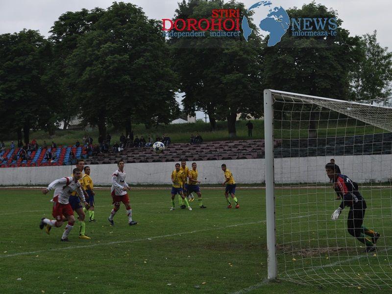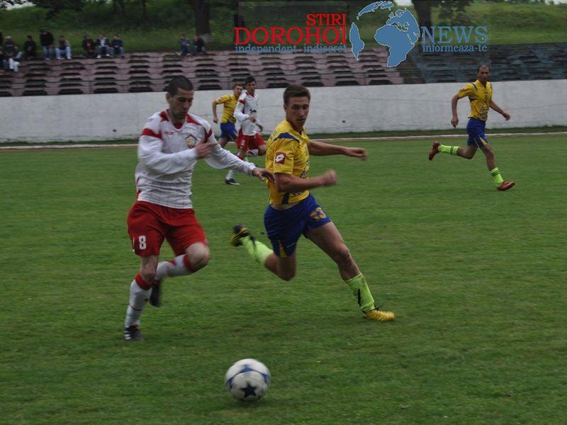 Dorohoienii au început în forță prima repriză punând imediat stăpânire pe joc însă nu au reușit să marcheze, ratările ținându-se lanț. Ocazii de a marca au avut și echipa oaspete, însă lisa de concentrare și posibil dorința mare de victorie au făcut ca aceștia să rateze din poziții foarte bune.