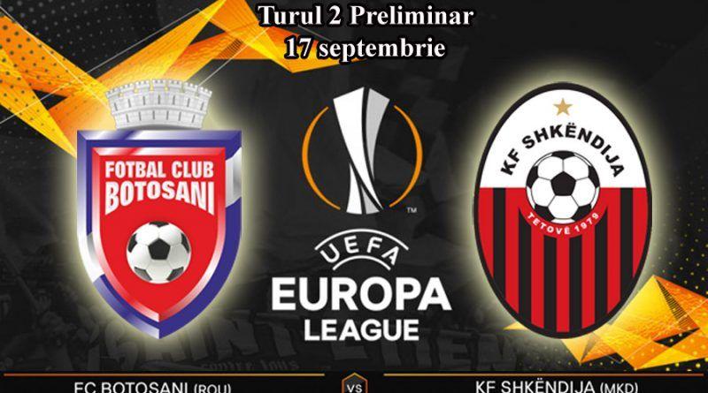 FC Botoșani va juca în turul 2 preliminar al Europa League cu echipa macedoniană KF Shkendija! Partida urmează să se joace într-o singură manşă, pe 17 septembrie 2020 pe stadionul „Municipal” din Botoșani.
