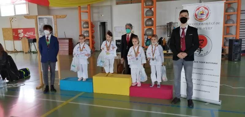 Copiii antrenați de SENSEI Sergiu MIHOC au executat în decursul competiției în funcție de centură două probe: kata și kihon.