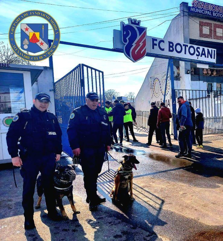 Gruparea de Jandarmi Mobilă "Alexandru cel Bun" Bacău, împreună cu jandarmi din Inspectoratul Județean Botoșani, polițiști și pompieri botoșăneni, va asigura măsurile de ordine și siguranță publică în municipiul Botoșani, la meciul de fotbal dintre echipele F.C. Botoșani și Universitatea Cluj, partidă ce se va disputa sâmbătă, 6 mai, pe stadionul municipal din localitate, cu începere de la ora 12.30. Accesul publicului pe stadion se va face începând cu ora 10.30.
