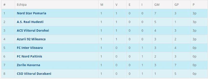 ProSport Vârfu Câmpului dispune la scor de neprezentare de Șoimii Bălușeni pe teren propriu, iar echipa locală, Inter Dorohoi, nu reușește să obțină nici un punct din deplasarea de la Tudora. În deplasarea de la Stăuceni, campioana en-titre, Unirea Curtești se impune fără prea multe emoții deși scorul la pauză era nul.