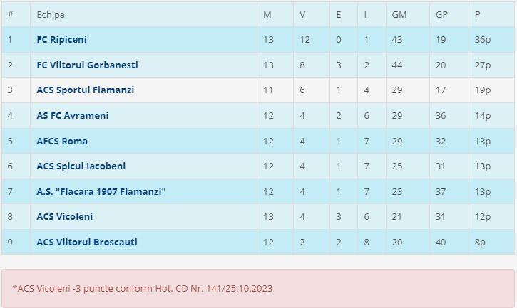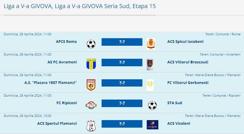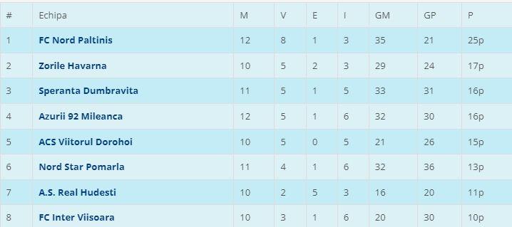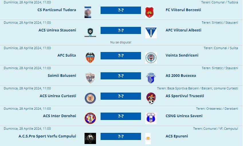 În seria nord, Viitorul Dorohoi a stat, FC Nord Păltiniș se impune la Viișoara la scor de neprezentare iar Zorile Havîrna pierd surprinzător pe teren propriu, 3-4 în disputa cu cei de la Speranța Dumbrăvița. În seria sud Spicul Iacobeni și FC Avrămeni au oferit un real spectacol de goluri. Deși pînă la pauză fiecare echipă reușise să înscrie câte o dată, a doua repriză a adus un festival de nu mai puțin de opt reușite, scorul final, 7-3, fiind unul mare chiar și pentru fotbalul amator. FC Ripiceni trece la pas de Vicoleni, 4-1 iar Viitorul Gorbănești termină la egalitate cu AFCS Roma pe teren propriu, asta deși la pauză conducea cu 2-0.