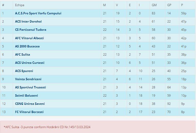 Șoimii Bălușeni – AFC Sulița 0-3 (la masa verde)