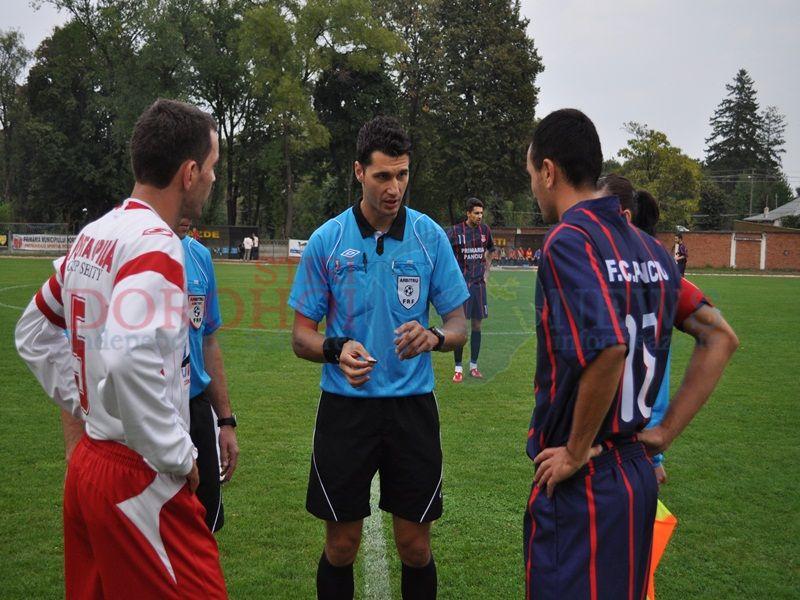 Meciul a început echilibrat, ambele echipe fiind atente în apărare și timide în atac. În minutul 24 dorohoienii au cerut penalty după ce un jucător al oaspeților a atins mingea cu mâna în propriul careu, însă niciun arbitru nu a sesizat acest lucru. Prima ocazie a venit în minutul 29 când CS Panciu a avut prima ocazie de gol. Portarul dorohoian și-a arătat calitațile în urma unei parade spectaculoase după executarea unei lovituri de la aproximativ 17 metri a celor de la Panciu în minutul 37. În urma unor decizii luate de către arbitrii, împotriva dorohoienilor, tribuna a început să scandeze lozinci de genul „Arbitru cumpărat!”. La pauză scorul a fost 0-0.