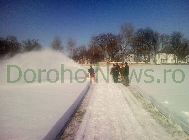 Din cauza stratului gros de zăpadă, lotul echipei FCM Dorohoi a întâmpinat dificultăţi în desfăşurarea antrenamentelor şi a unor eventuale amicaluri. De aceea, ieri, un utilaj a curăţat toată zăpada aşternută pe terenul doi, iar în cursul acestei dimineți a fost curățat și terenul principal.