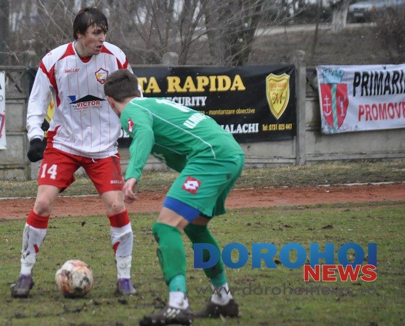 In minutul 27 Suleru a centrat de pe banda dreapta si Apetri a inscris cu un sut plasat la firul…noroiului. De partea cealalta, dorohoienii au avut sansa egalarii pe finalul primei reprize, dar portarul Pascal a fost la post si a scos de la viclu o lovitura libera executata de Bordeianu.