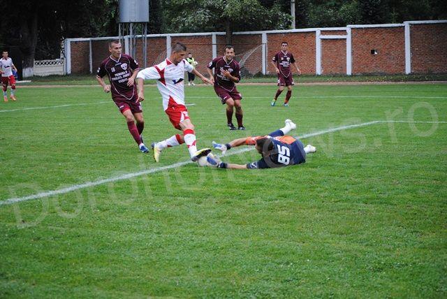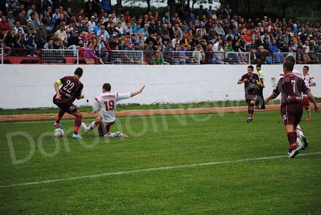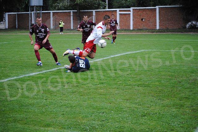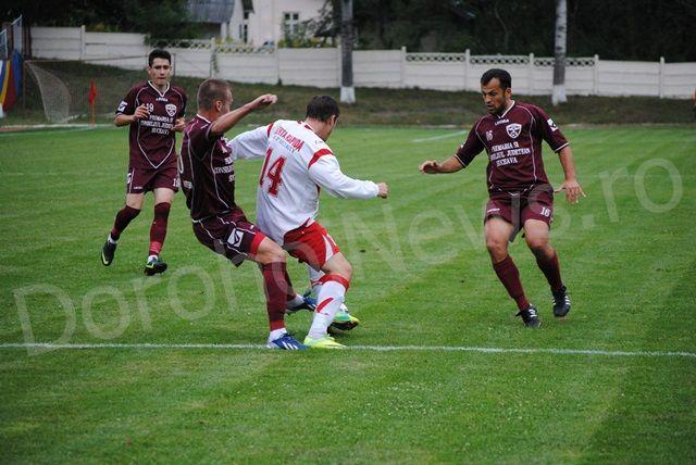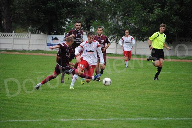 Meciul a început foarte echilibrat, prima fază mai periculoasă fiind în minutul 6 când sucevenii au centrat de pe partea dreaptă, însă nu a fost nimeni în fața porții dorohoiene care să devieze în poartă. Atmosfera a devenit foarte tensionată în minutul 9 când, în urma unei lovituri libere de la aproximativ 18 metri, oaspeții au lovit puternic bara transversală, mingea revenind în teren chiar de pe linia porții dorohoienilor. FCM Dorohoi a dat replica în minutul 23 când Eduard Sandu a reușit să treacă foarte frumos de trei adversari, ultimul dintre aceștia ținându-l de mână în ultima clipă, fază la care totuși arbitrul nu a acordat nimic. Dorohoienii au presat echipa oaspete creându-și din ce în ce mai multe ocazii de poartă, cea mai importantă fiind în urma unei lovituri libere executate în minutul 25, urmată de o lovitură de cap puternică, mingea fiind scoasă spectaculor de portarul sucevenilor. Rapid CFR Suceava a replicat în minutul 30, când după un schimb agresiv de pase au deschis jocul pe partea dreaptă, reușind să înscrie, golul fiind anulat pe motiv de offside. Sfârșitul primei reprize i-a prins pe cei de la FCM Dorohoi tot în atac, reușind în minutul 45, după o interceptare a lui Eduard Sandu, acesta driblează un adversar, centrează de pe partea stângă, iar Tudor Homneac înscrie pentru 1-0. Tabela indica la pauză 1-0.