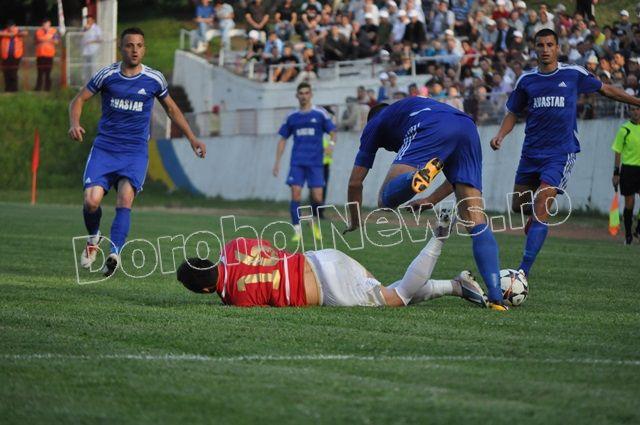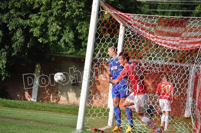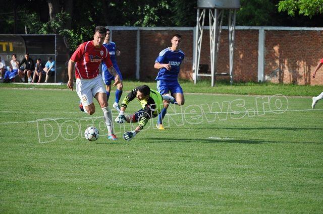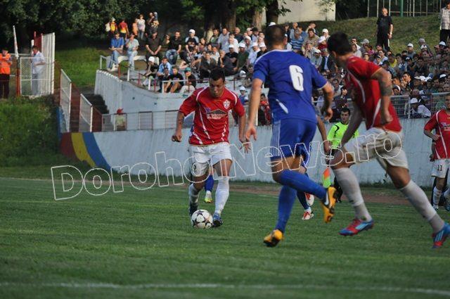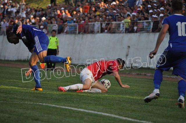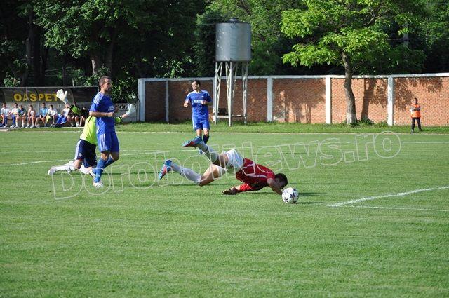 FCM Dorohoi a început tare meciul, cu un șut al lui Grumezescu în minutul 7, însă pe lângă poartă. După doar trei minute Kosarom Pașcani deschide scorul prin Diaconu care înscrie de la 5 metri, după o respingere a lui Roheski. Dorohoienii egalează în minutul 17 când Alexandru Marin a împins mingea în poartă de la 2 metri, după ce Vrabie a lobat portarul. FCM Dorohoi continuă să își domine adversarul, care se apără organizat, dar minutul 25 vine cu un nou gol pentru dorohoieni, când Edy Sandu a transformat un penalty, obținut de Alexandru Marin. Alexandru Marin înscrie din nou de la 2 metri, în minutul 31, după un șut a lui Edy Sandu respins de portar. La doar șapte minute diferență pășcăneanul Nemțeanu marchează de la 6 metri, după ce a scăpat din marcajul dorohoian. În minutul 40, Orășanu șutează foarte bine dintr-o lovitură liberă, însă respinge portarul.