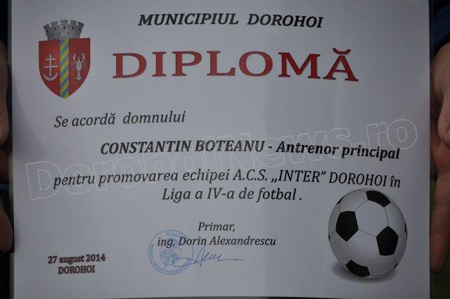 După ce Inter Dorohoi s-a calificat în liga a IV-a, Dorin Alexandrescu, primarul municipiului Dorohoi a premiat echipa și le-a acordat diplome și medalii pentru performanța care au obținut-o.
