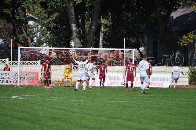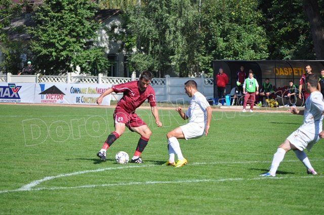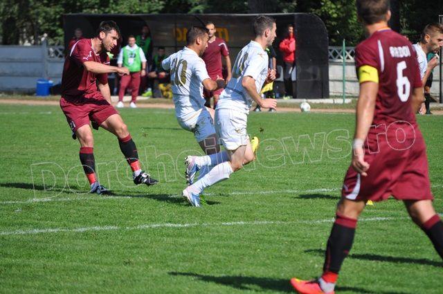 Prima repriză a partidei a fost controlată de oaspeţi. FCM Dorohoi a ieşit la joc în partea a doua a primei reprize şi au avut două şanse de a marca prin Vrabie şi Eduard Sandu dar mingile trimise de aceştia din afara careului au trecut pe lângă poartă. În minutul 36, FCM Dorohoi a reuşit deschiderea scorului printr-un gol foarte frumos, marcat de Eduard Sandu, după o lovitură liberă executată impecabil.