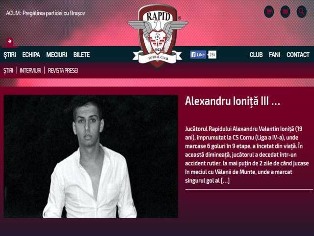 Alexandru Valentin Ioniţă (19 ani), jucător la Rapid, care în acest sezon era împrumutat la CS Cornu, în Liga a IV-a, a murit luni dimineaţă într-un accident rutier.