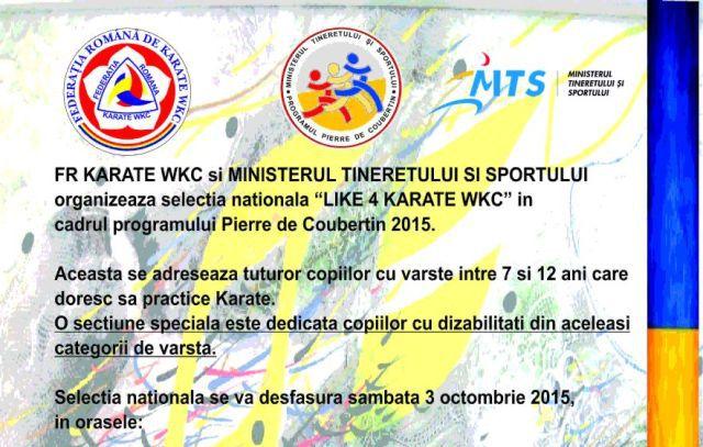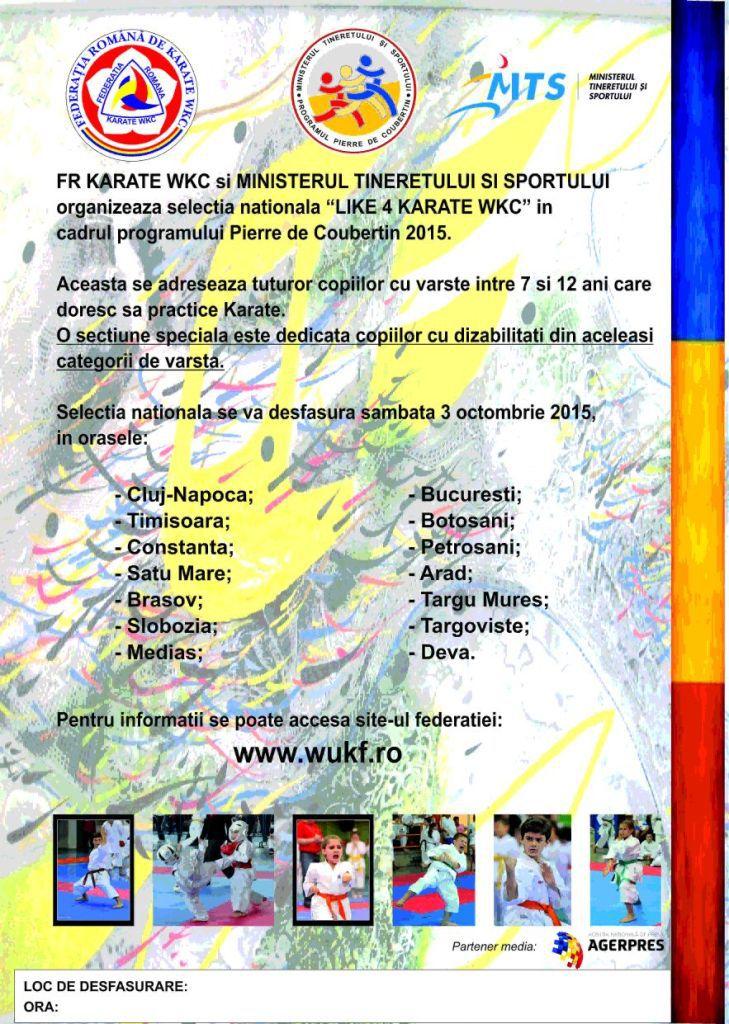 Asteptam copii dornici sa invete si sa practice Karate sambata 9 octombrie la Sala polivalenta pentru a participa la o proba de selectie incepand cu ora 9.00.